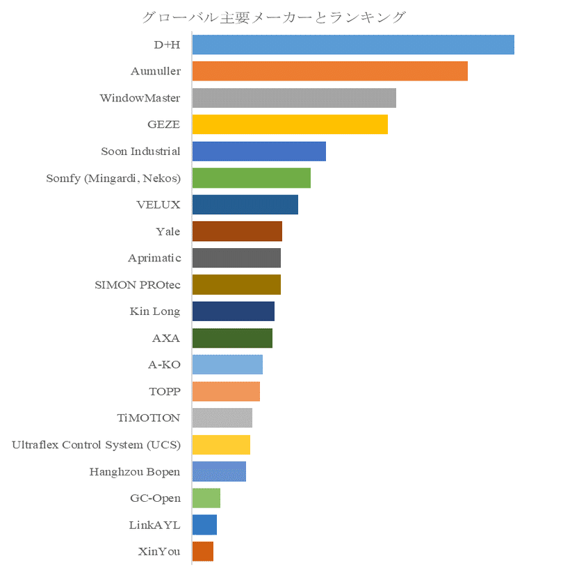 市場集中が進む主要企業構造QYResearchのトップ企業研究センターによると、ウィンドウオープナーの世界的な主要企業には、D+H、Aumuller、WindowMaster、GEZE、Soon Industrial、Somfy (Mingardi, Nekos)、VELUX、Yale、Aprimatic、SIMON PROtecなどが含まれる。2024年、トップ5企業は売上ベースで約37%の市場シェアを占め、トップ10企業では約50%を占めるなど、市場は一定の寡占構造を示す。これら企業は、自社の技術力を活かし、電動・自動化機能の製品ラインナップを拡充するとともに、IoT対応やBMS連携機能の提供を強化している。また、欧州・北米・アジアの各地域で現地法人や代理店網を構築し、グローバル市場への迅速な展開力を持つことが競争優位性を高めている。スマート化・自動化で進化する市場トレンドウィンドウオープナー市場の今後は、スマートビルディング化と省エネ・環境配慮意識の高まりにより、より高度な自動化・連動機能を備えた製品が主流になると予測される。AI・IoT技術を活用した制御アルゴリズムの導入により、気象条件や室内環境に応じた最適な換気・排煙が可能となり、建物全体のエネルギー効率を向上させる方向に進化するである。また、可視化・遠隔管理機能を組み込むことで、施設管理者の運用効率向上やメンテナンスコストの低減にも貢献する。これにより、従来の単機能製品から、建物の環境制御ソリューションの中核として位置づけられる製品群へと変化するである。 最新動向2025 年 1 月 10 日—中国(上海):Somfy (Mingardi, Nekos) が新型電動ウィンドウオープナーを発表、AI制御による換気最適化機能を搭載し、国内建築基準認証を取得。2024 年 3 月 22 日—スウェーデン:VELUX が商業施設向けスマートウィンドウオープナーの量産開始、BMS連携による省エネ運用を強化。2023 年 6 月 15 日—ドイツ:GEZE が自動開閉ウィンドウの新型モデルを発表、IoTセンサーとの連動により室内空気質のリアルタイム監視機能を搭載。