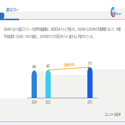 経口スプレー市場、2025年に467百万米ドル、2031年に513百万米ドル到達へ