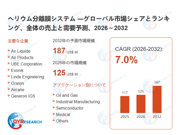 本記事は、QYResearch発行の「ヘリウム分離膜システム―グローバル市場シェアとランキング、全体の売上と需要予測、2026~2032」を基に作成しています。
