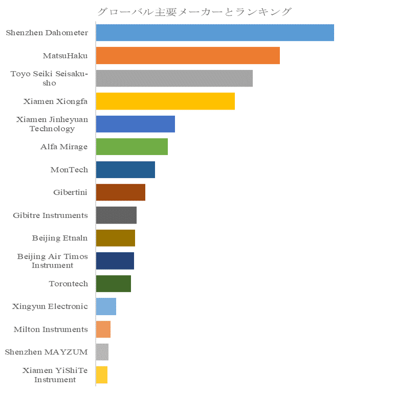 QYResearchのトップ企業研究センターによると、浮力式密度計市場の主要製造業者には、Shenzhen Dahometer、MatsuHaku、Toyo Seiki Seisaku-sho、Xiamen Xiongfa、Xiamen Jinheyuan Technology、Alfa Mirage、MonTech、Gibertini、Gibitre Instruments、Beijing Etnalnなどが含まれる。2024年にはトップ5企業が売上ベースで約55%の市場シェアを占め、トップ10企業で約71%を占める。これら企業は精密測定技術、装置の耐久性、操作性の向上に注力し、製品の信頼性やブランド力を武器に市場を牽引する。特に研究開発用途向けの高精度モデルや、自動化・デジタル化に対応した最新製品の提供を通じ、技術集約型競争が市場を特徴づけている。