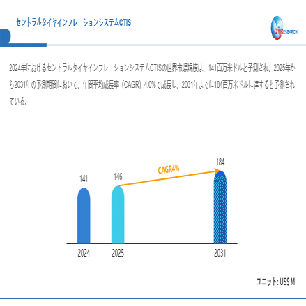 セントラルタイヤインフレーションシステムCTIS世界市場は2031年に184百万米ドルに成長見込み