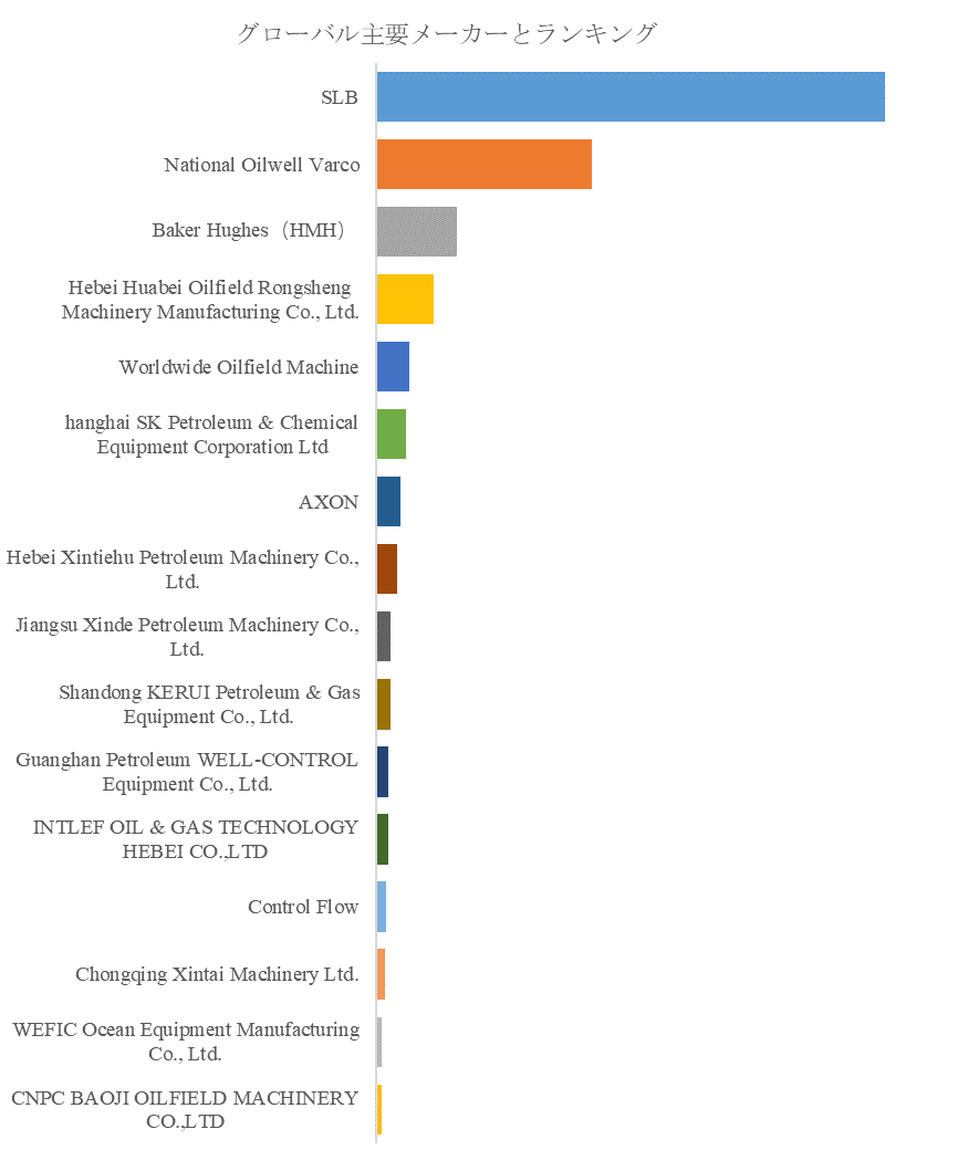 QYResearchのトップ企業研究センターによれば、噴出防止装置の世界的な主要製造業者には、SLB、National Oilwell Varco、Baker Hughes(HMH)、Hebei Huabei Oilfield Rongsheng Machinery Manufacturing、Worldwide Oilfield Machine、Shanghai SK Petroleum & Chemical Equipment Corporation、AXON、Hebei Xintiehu Petroleum Machinery、Jiangsu Xinde Petroleum Machinery、Shandong KERUI Petroleum & Gas Equipmentなどが含まれている。2024年時点で、上位5社は売上ベースで約80.0%の市場シェアを占め、上位10社では約88.0%に達している。この構造は、噴出防止装置が高度な設計力、製造能力、認証対応力を必要とする製品であることを如実に示している。市場は多数企業が競合する形ではなく、限られた企業群が長年の実績と技術蓄積を背景に支配的地位を確立している。