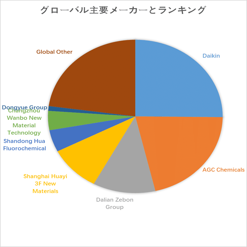 QYResearchのトップ企業研究センターによると、フッ素エチレンビニルエーテル(FEVE)樹脂の世界的な主要製造業者には、Daikin、AGC Chemicals、Dalian Zebon Groupなどが含まれる。2024年におけるトップ3企業の市場シェアは約58%であり、業界集中度は中程度である。Daikinは高耐候性・長寿命塗料向け樹脂の研究開発に注力し、塗料メーカーとの協業を通じて用途開発を拡大している。AGC Chemicalsは建材・外装用途向け製品ラインを強化し、施工性改善と環境適応性を両立させる戦略を実施する。Dalian Zebon Groupは中国市場を中心に供給網を拡大し、地域密着型製品供給とカスタマイズ対応を進める。これらの企業は技術革新と市場対応力を武器に、グローバルFEVE樹脂市場での優位性を確立している。