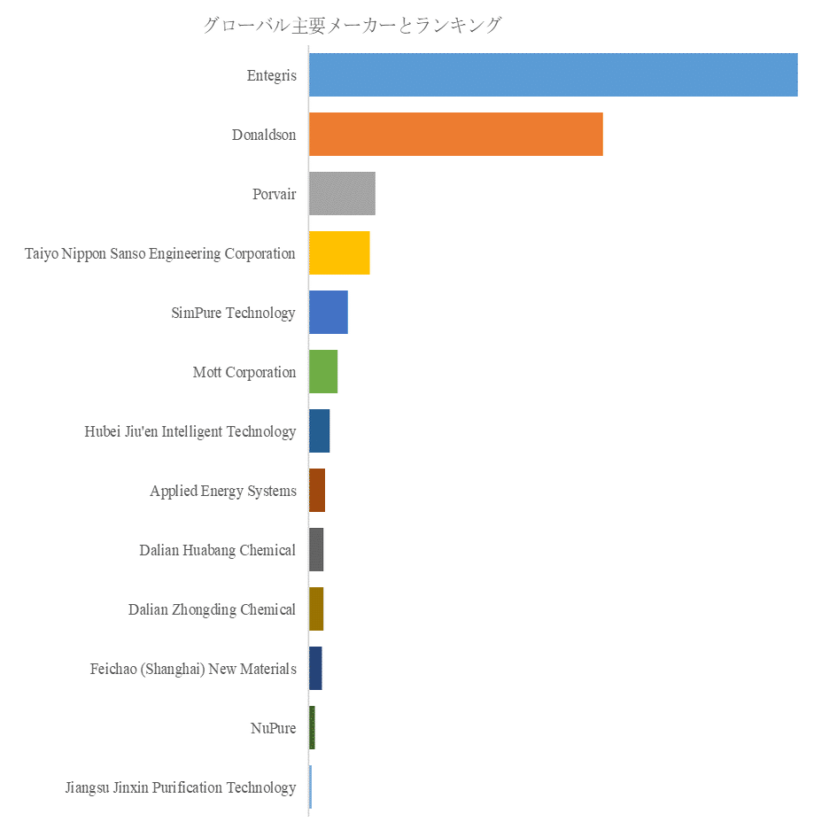 POU浄水器の世界市場は、上位5社が売上の約81.0%を占める寡占状態にある。主な製造業者には、Entegris、Donaldson、Porvair、Taiyo Nippon Sanso Engineering Corporation、SimPure Technology、Mott Corporation、Hubei Jiu'en Intelligent Technology、Applied Energy Systems、Dalian Huabang Chemical、Dalian Zhongding Chemicalなどが含まれる。これらの企業は、先進的な浄水技術と品質管理、グローバルな販売網を背景に市場シェアを拡大している。特にEntegrisとDonaldsonは、研究開発への投資を積極的に行い、新素材フィルターやスマート浄水ソリューションを市場に投入することで、差別化を図っている。また、Taiyo Nippon Sanso Engineering CorporationやSimPure Technologyは、アジア市場での地域密着戦略により高い成長を実現している。