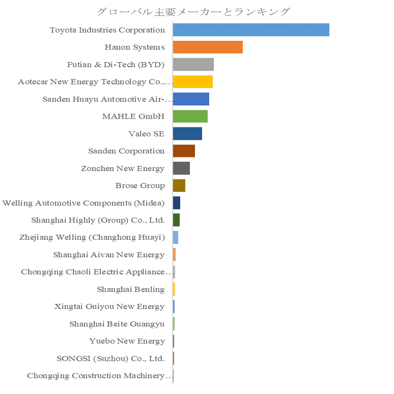 QYResearchのトップ企業研究センターによると、電動車用の電動コンプレッサーの世界的な主要製造業者には、Toyota Industries Corporation、Hanon Systems、Futian & Di-Tech (BYD)、Aotecar New Energy Technology Co., Ltd.、Sanden Huayu Automotive Air-Conditioning Co., Ltd.、MAHLE GmbH、Sanden Corporation、Valeo SE、Zonchen New Energy、Brose Groupなどが含まれている。2024年、世界のトップ10企業は売上の観点から約86.0%の市場シェアを持っていた。これらの企業はいずれも熱マネジメントとモーター制御技術に強みを持ち、冷媒の環境負荷低減や高圧化対応などの技術革新を進めている。特に日本勢では、静粛性やコンパクト設計に優れた製品開発が進んでおり、高級車や燃料電池車への採用が拡大している。一方、中国メーカーはコスト競争力と量産対応力を武器に世界市場で急速に存在感を高め、電動車の普及ペースが速いアジア地域でのシェアを拡大している。欧州勢は熱交換・冷媒循環技術の最適化を進め、車両全体のエネルギー管理システムとの統合を深化させている。こうした多極的な競争環境の中で、今後の成長の鍵を握るのは、システム効率・耐久性・NVH(Noise, Vibration, Harshness)性能の総合的最適化である。