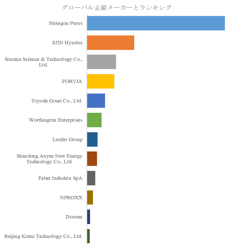 QYResearchのトップ企業研究センターによると、水素用炭素繊維複合タンク市場では、Hexagon Purus、IlJIN Hysolus、Sinoma Science & Technology、FORVIA、Toyoda Gosei、Worthington Enterprises、Luxfer Group、Shandong Auyan、Faber Industrie、NPROXXなど、グローバルのトップ企業が中核的役割を担っている。2024年時点で世界トップ5企業が約55%の市場シェアを確保し、トップ10では64%に達していることから、技術力と顧客基盤を兼ね備えたリーディングカンパニーによる寡占化が進行している。各社は年報にて、次世代Type IVタンクの量産化、車載用高圧システムの軽量化、船舶・鉄道・産業機械向けの新規プラットフォーム開発などを重点領域として掲げており、製品の安全性・耐久性・コスト競争力を総合的に引き上げる戦略を加速している。さらに、OEMおよび水素ステーション事業者との長期契約の増加により、供給安定性を軸としたサプライチェーン構築が進む。こうしたリーダー企業の動きは、市場の品質基準と技術ロードマップを実質的に規定し、2030年代に向けた市場構造の再編を主導する展開となる。